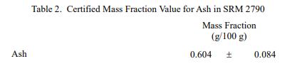 SRM 2790 中元素的認證質量分數值,以干質量為基礎報告,灰分分別在表 1 和表 2 中提供。 NIST 認證值是 NIST 對其準確性具有最高置信度的值,因為所有已知或可疑的偏差來源都已被調查或考慮在內 [1]。 NIST 進行了賦值分析。認證的質量分數值計算為 NIST 方法的平均值的平均值。相關的不確定性以大約 95% 的置信水平表示 [2-4]。