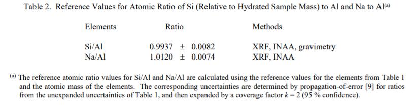 參考值是對 NIST 提供的真實(shí)值的最佳估計(jì),其中所有已知或可疑的偏差來源都沒有被 NIST [1] 充分調(diào)查。表 1 中提供了主要成分(主要元素、燒失量 [LOI]、熔化損失 [LOF])的參考值,表 2 中提供了 Si/Al 和 Na/Al 比率,表 3 中提供了微量元素。