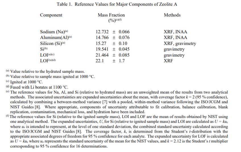 旨在為測量比較提供沸石 A 的來源。沸石由一家沸石生產(chǎn)公司捐贈(zèng)給美國國家標(biāo)準(zhǔn)與技術(shù)研究院 (NIST)。一個(gè)單元由密封容器中的大約 35 克到 40 克材料組成。來自化學(xué)、衍射和粒度測量的參考值和信息值在表 1 至 14。